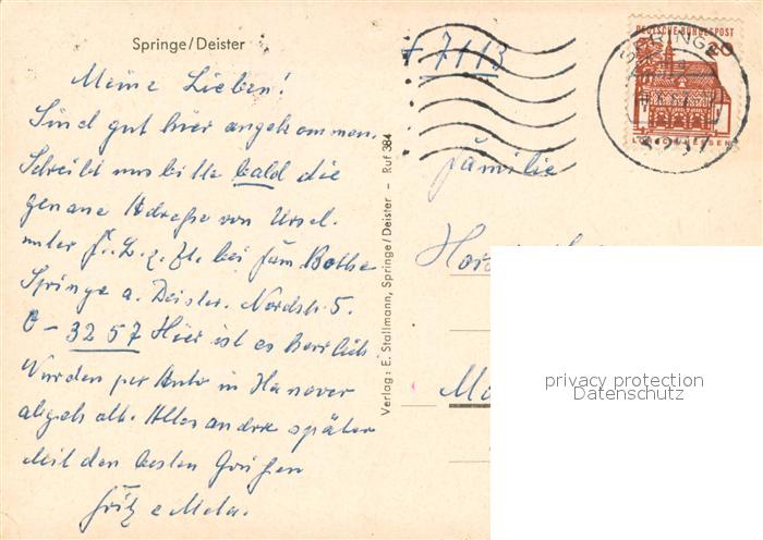 73742479 alte Postkarte Springe Deister Bahnhof Lange Str Jagdschloss Hotel Friese Marienbrunnen Partie im Volkspark Eingang Wisente im Freigehege postalisch gelaufen Erhaltung siehe scans [WerneD78] KatCode: 11110003241017