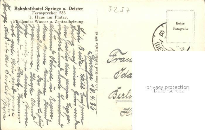 31704710 alte Postkarte Springe Deister Bahnhofshotel postalisch gelaufen Erhaltung siehe scans KatCode: 11110003241017
