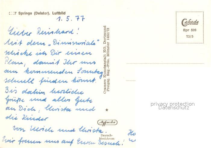 73088413 Springe Deister Fliegeraufnahme postalisch nicht gelaufen Erhaltung siehe scans [NatalD47] KatCode: 11110003241017