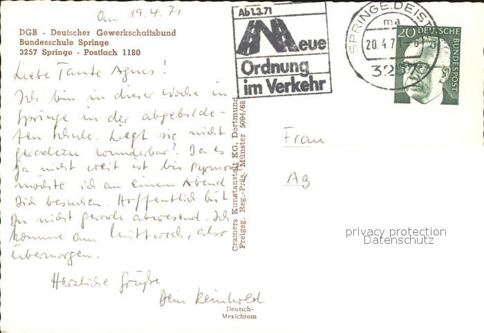 72521689 alte Postkarte Springe Deister Fliegeraufnahme Deutscher Gewerkschaftsbund Bundesschule postalisch gelaufen Erhaltung siehe scans KatCode: 11110003241017