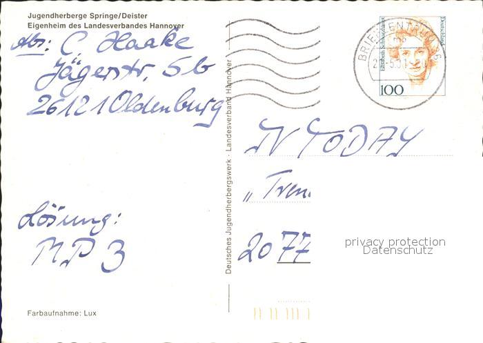 72053031 alte Postkarte Springe Deister Jugendherberge Landesverband Hannover postalisch gelaufen Erhaltung siehe scans KatCode: 11110003241017