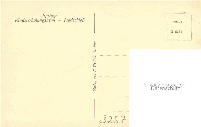 42721594 Springe Deister Kindererholungsheim Jagdschloss Hirsch postalisch nicht gelaufen Erhaltung siehe scans [KathaD79] KatCode: 11110003241017