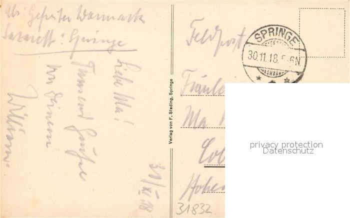 43252573 alte Postkarte Springe Deister Koellnischfeld Forsthaus postalisch gelaufen Feldpost Erhaltung siehe scans [FriedD77] KatCode: 11110003241017