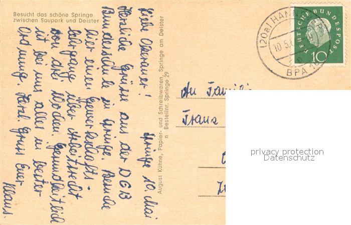 73673591 alte Postkarte Springe Deister Landheim der Tellkampschule Jugendherberge Lange Strasse mit Ratskeller Heimatvolkshochschule Kreiskrankenhaus Forsthaus Koellnischfeld Landratsamt postalisch gelaufen Erhaltung siehe scans [WerneD78] KatCode: 11110003241017
