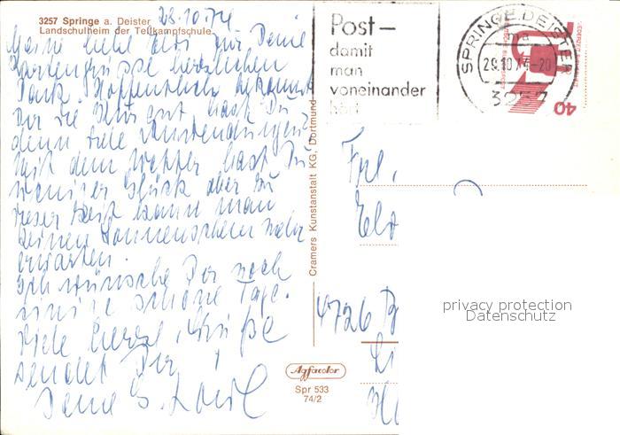 72577639 alte Postkarte Springe Deister Landschulheim der Tellkampfschule postalisch gelaufen Erhaltung siehe scans [FriedD77] KatCode: 11110003241017