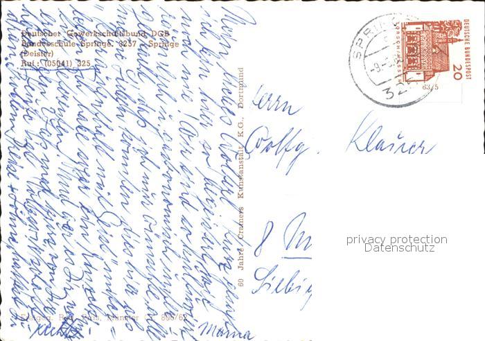 72580316 alte Postkarte Springe Deister Luftaufnahme Gewerkschaftsbubd Bundesschule postalisch gelaufen Erhaltung siehe scans [KathaD79] KatCode: 11110003241017