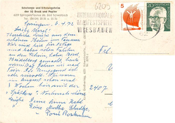 73935741 alte Postkarte Springen Heidenrod Taunus Schulungs und Erholungsheim der IG Druck und Papier Teilansichten postalisch gelaufen Erhaltung siehe scans [FriedD77] KatCode: 11110006439005