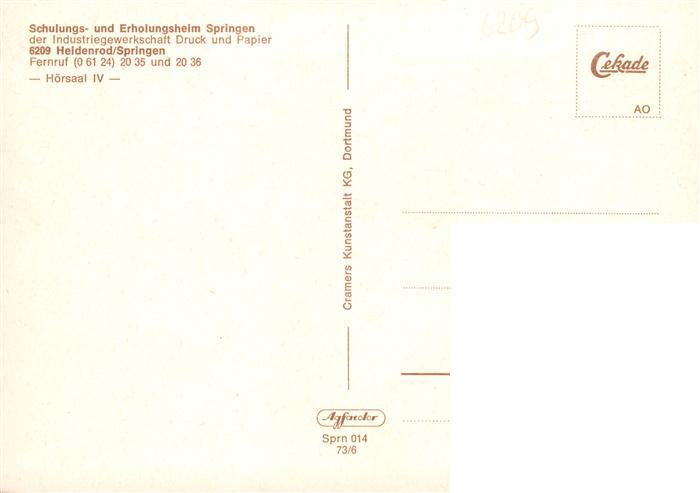 73936609 Springen Heidenrod Taunus Schulungs und Erholungsheim Springen der IG Druck und Papier Hoersaal IV postalisch nicht gelaufen Erhaltung siehe scans [FriedD77] KatCode: 11110006439005