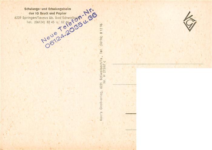 73936579 Springen Heidenrod Taunus Schulungs und Erholungsheim Springen der IG Druck und Papier Eingangshalle Liegewiese postalisch nicht gelaufen Erhaltung siehe scans [FriedD77] KatCode: 11110006439005