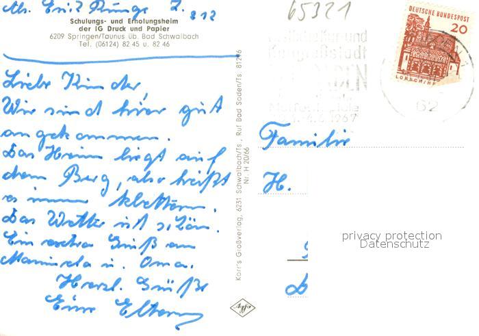 73642189 alte Postkarte Springen Untertaunus Schulungs und Erholungsheim der IG Druck und Papier Gastraum Schulungsraum postalisch gelaufen Erhaltung siehe scans [WerneD78] KatCode: 11110006439005