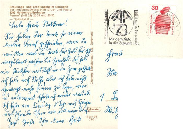 73879711 alte Postkarte Springen Untertaunus Schulungs und Erholungsheim der IG Druck und Papier Speisesaal postalisch gelaufen Erhaltung siehe scans [WerneD78] KatCode: 11110006439005