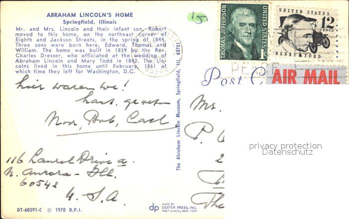 72432453 old postcard Springfield Illinois Abraham Lincoln Home postalisch gelaufen Erhaltung siehe scans KatCode: 14140150000000