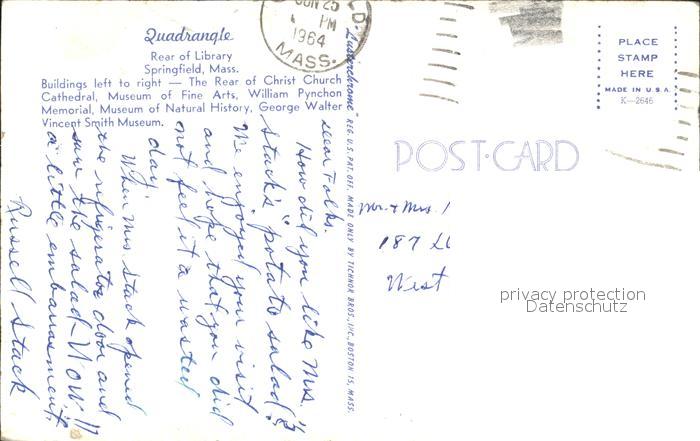 72315574 old postcard Springfield Massachusetts Church and Catedral Museum Fine Arts postalisch gelaufen Erhaltung siehe scans KatCode: 14140230000000