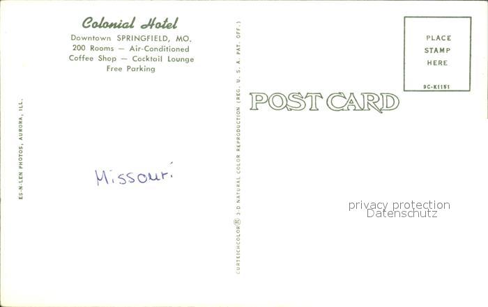 72456667 Springfield Missouri Colonial Hotel postalisch nicht gelaufen Erhaltung siehe scans KatCode: 14140270000000