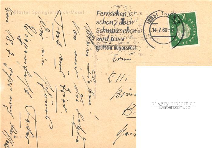 72931176 alte Postkarte Springiersbach Kloster postalisch gelaufen Erhaltung siehe scans [KathaD81] KatCode: 11110007231005