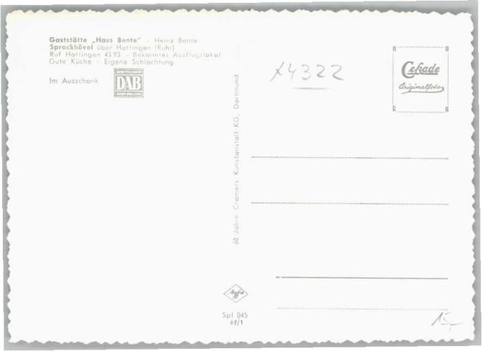 40637780 Sprockhoevel aststätte Haus Bente * KatCode 11110005954028