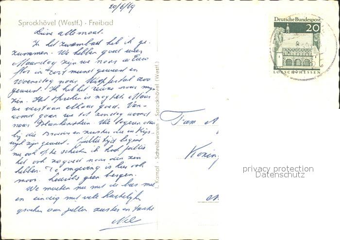 72285283 alte Postkarte Sprockhoevel Freibad postalisch gelaufen Erhaltung siehe scans KatCode: 11110005954028