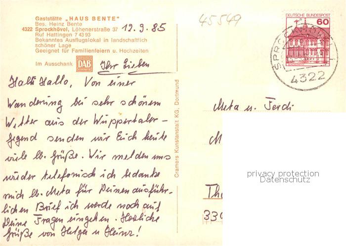 73863606 Sprockhoevel Gaststaette Haus Bente Gastraeume Terrasse postalisch nicht gelaufen Erhaltung siehe scans [WerneD78] KatCode: 11110005954028