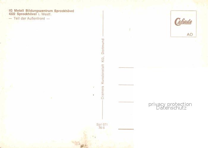 72743771 Sprockhoevel IG Metall Bildungszentrum postalisch nicht gelaufen Erhaltung siehe scans [FriedD77] KatCode: 11110005954028
