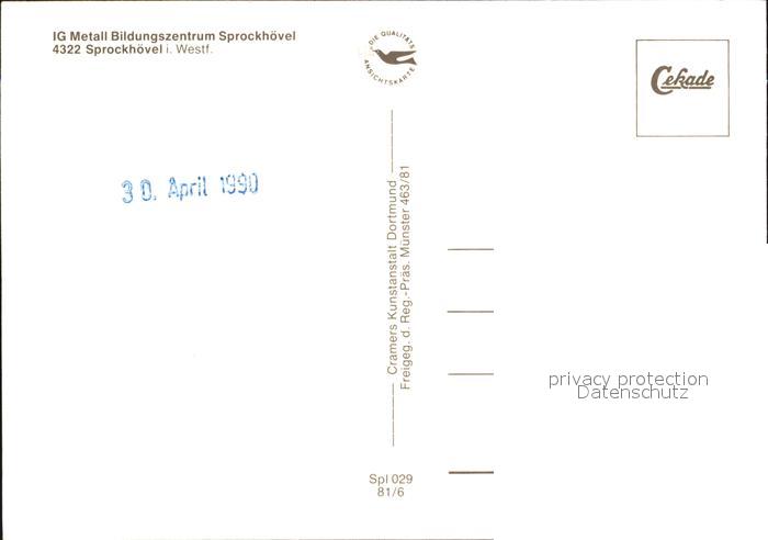 72478709 Sprockhoevel IG Metall Bildungszentrum postalisch nicht gelaufen Erhaltung siehe scans KatCode: 11110005954028