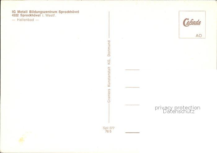72509950 Sprockhoevel IG Metall Bildungszentrum Hallenbad postalisch nicht gelaufen Erhaltung siehe scans KatCode: 11110005954028