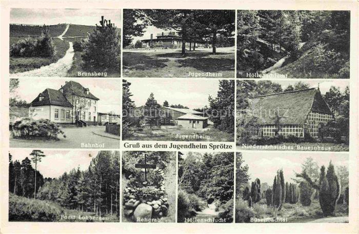 34146514 Sproetze Buchholz Nordheide Niedersachsen Jugendheim Brunsberg Hoellenschlucht Bahnhof Niedersaechsisches Bauernhaus Forst Rehgrab Landschaft postalisch nicht gelaufen Erhaltung siehe scans [FriedD77] KatCode: 11110003353005