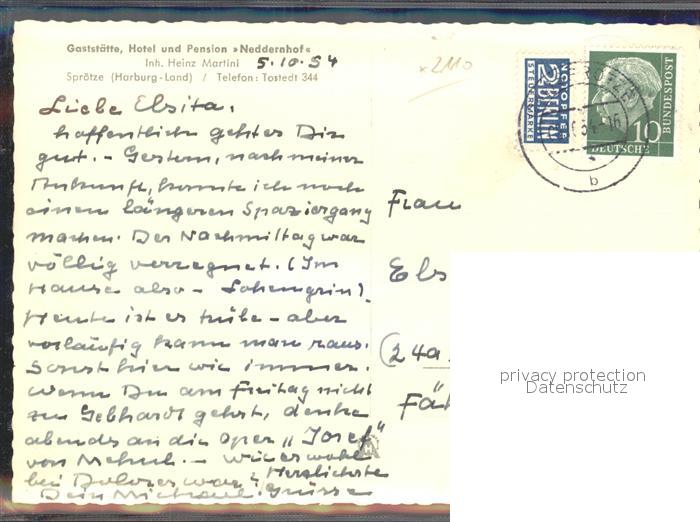 42061039 alte Postkarte Sproetze Gaststaette Hotel Pension Neddernhof postalisch gelaufen Erhaltung siehe scans KatCode: 11110003353005