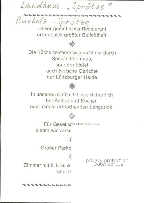 72577617 Sproetze Landhaus Sproetze Hotel Restaurant postalisch nicht gelaufen Werbekarte (keine Postkarte) Erhaltung siehe scans [FriedD77] KatCode: 11110003353005