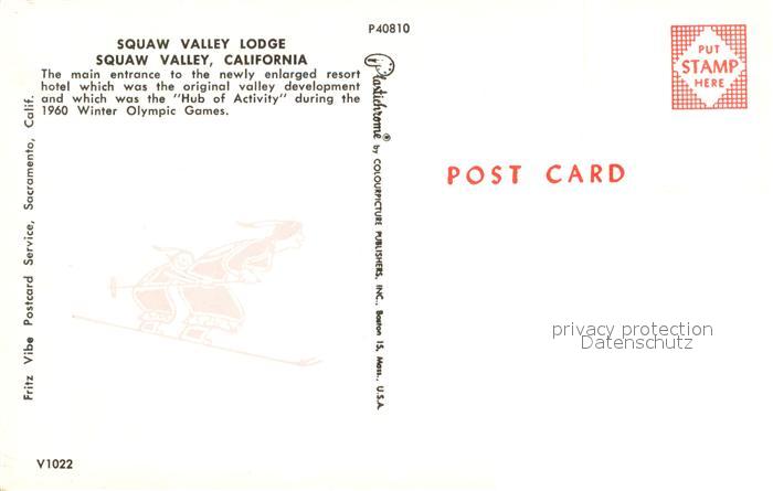 73701274 Squaw Valley Lodge Olympic Games postalisch nicht gelaufen Erhaltung siehe scans [FriedD77] KatCode: 14140050000000