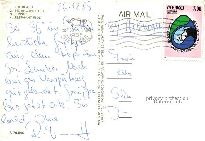 74005749 old postcard SRI LANKA Ceylon Beach Fishing with nets sunset Elephant ride postalisch gelaufen Erhaltung siehe scans [FriedD77] KatCode: 12160
