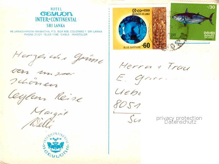 72638170 Sri Lanka Hotel Ceylon Restaurant Zimmer KatCode 12160