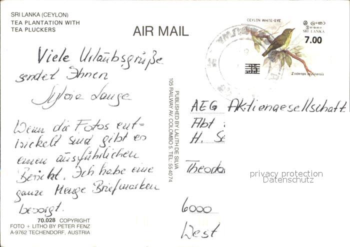 old postcard Sri Lanka Tea Plantation with Tea Pluckers postalisch gelaufen Erhaltung siehe scans [FriedD77]