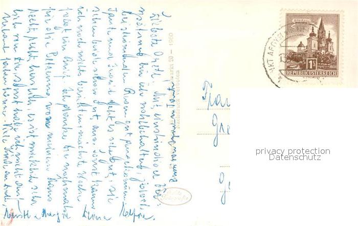 73317229 alte Postkarte St Aegyd Neuwalde Gesamtansicht mit Alpenpanorama Ortsmotiv mit Kirche postalisch gelaufen Erhaltung siehe scans [FriedD77] KatCode: 11390122031411