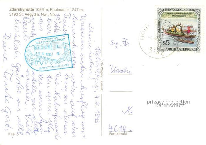 73082928 alte Postkarte St Aegyd Neuwalde Zdarskyhuette Paulmauer Felsen Gebirgspanorama postalisch gelaufen Erhaltung siehe scans [FriedD77] KatCode: 11390122031411