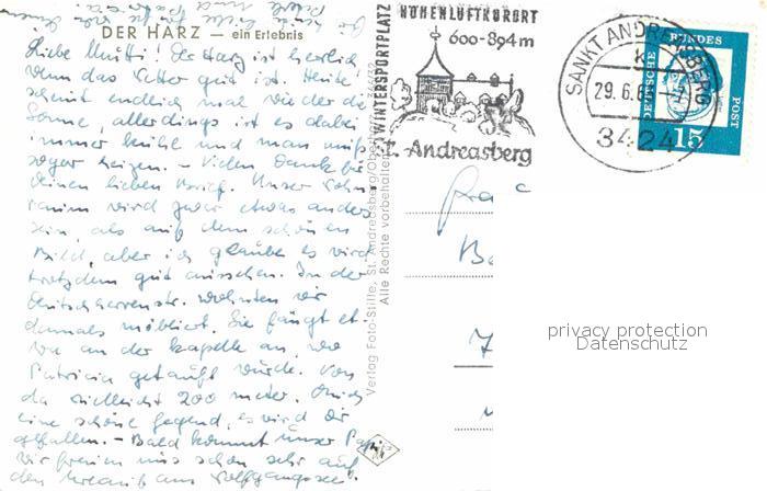 72791164 alte Postkarte St Andreasberg Harz postalisch gelaufen Erhaltung siehe scans [NatalD47] KatCode: 11110003153010