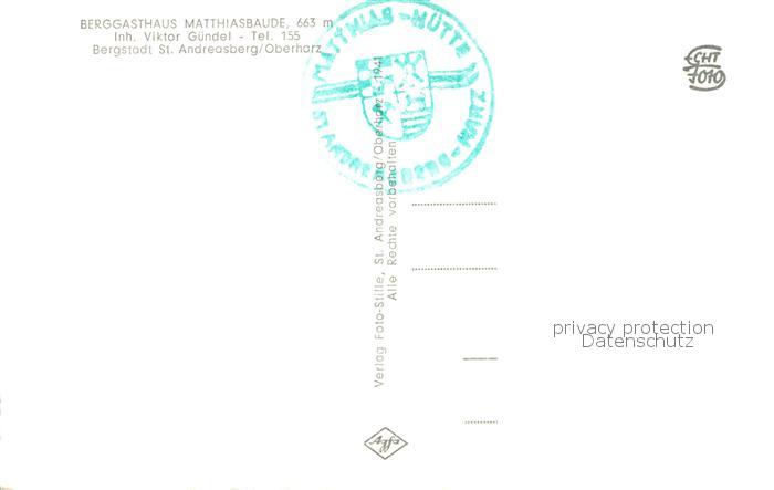 73763650 St Andreasberg Harz Berggasthaus Matthiasbaude postalisch nicht gelaufen Erhaltung siehe scans [FriedD77] KatCode: 11110003153010