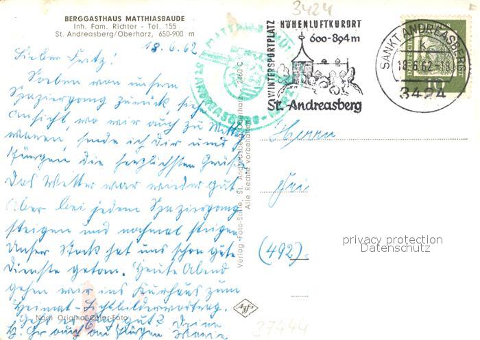 73041029 alte Postkarte St Andreasberg Harz Berggasthaus Matthiasbaude postalisch gelaufen Erhaltung siehe scans [WerneD78] KatCode: 11110003153010