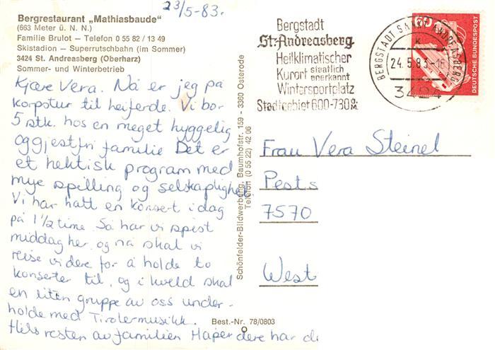 73948445 alte Postkarte St Andreasberg Harz Berggasthaus Matthiasbaude Gaststube Super Rutschbahn am Matthias Schmidt Berg postalisch gelaufen Erhaltung siehe scans [WerneD78] KatCode: 11110003153010