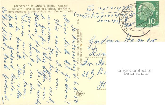 73759475 alte Postkarte St Andreasberg Harz Berggasthaus Matthiashuette m. Damenkapelle Kuhherde postalisch gelaufen Erhaltung siehe scans [LiesaD40] KatCode: 11110003153010