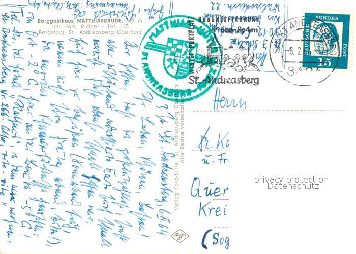 73568862 alte Postkarte St Andreasberg Harz Berggasthaus Matthisbaude postalisch gelaufen Erhaltung siehe scans [FriedD77] KatCode: 11110003153010
