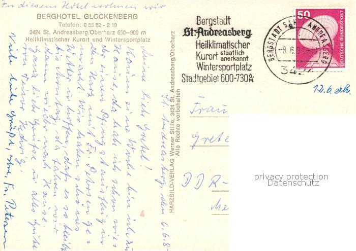 73097875 alte Postkarte St Andreasberg Harz Berghotel Glockenberg Fliegeraufnahme postalisch gelaufen Erhaltung siehe scans [WerneD78] KatCode: 11110003153010