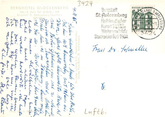 73884307 alte Postkarte St Andreasberg Harz Berghotel Glockenberg Fliegeraufnahme postalisch gelaufen Erhaltung siehe scans [FriedD77] KatCode: 11110003153010