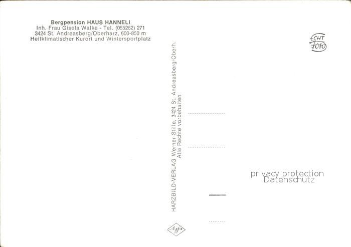 72130306 St Andreasberg Harz Bergpension Haus Hanneli postalisch nicht gelaufen Erhaltung siehe scans KatCode: 11110003153010