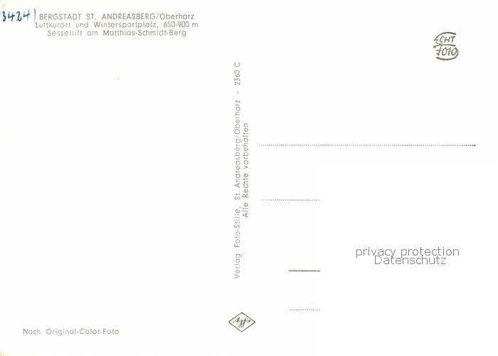 72821405 St Andreasberg Harz Bergstadt Luftkurort Wintersportplatz Sessellift am Matthis Schmidt Berg postalisch nicht gelaufen Erhaltung siehe scans [FriedD77] KatCode: 11110003153010