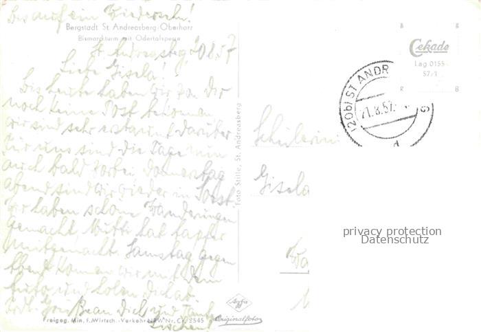 74021928 alte Postkarte St Andreasberg Harz Bismarckturm mit Odertalsperre postalisch gelaufen Fliegeraufnahme Erhaltung siehe scans [FriedD77] KatCode: 11110003153010