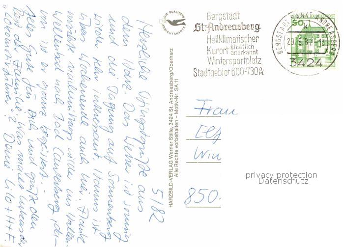 72756284 alte Postkarte St Andreasberg Harz Blick von den Drei Jungern Sessellift Kurpark Konzert postalisch gelaufen Erhaltung siehe scans [LiesaD40] KatCode: 11110003153010