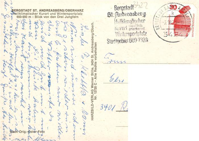 73949354 alte Postkarte St Andreasberg Harz Blick von den Drei Jungfern postalisch gelaufen Erhaltung siehe scans [WerneD78] KatCode: 11110003153010