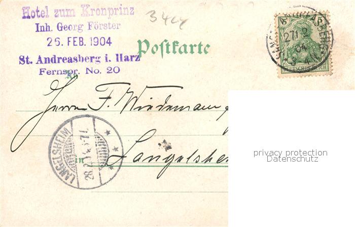33155591 alte Postkarte St Andreasberg Harz Busch’s Hotel Litho postalisch gelaufen Erhaltung siehe scans [PaolaD17] KatCode: 11110003153010