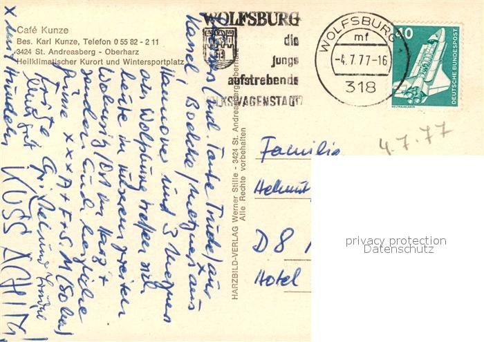73071421 alte Postkarte St Andreasberg Harz Cafe Kunze postalisch gelaufen Erhaltung siehe scans [NatalD47] KatCode: 11110003153010