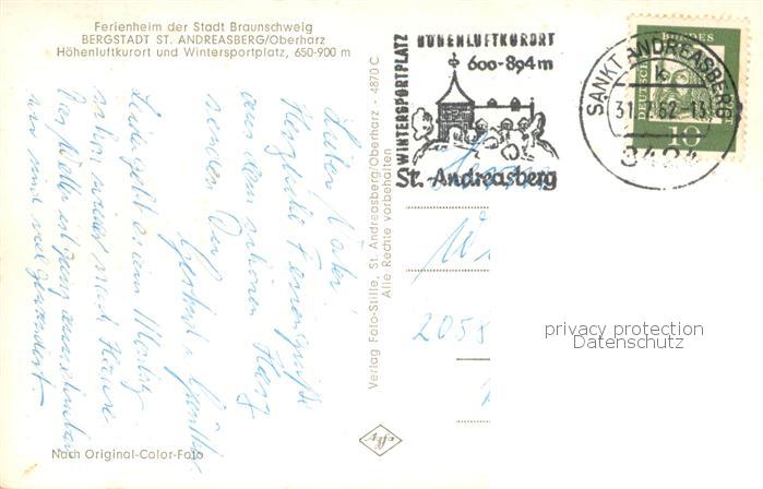 73762380 alte Postkarte St Andreasberg Harz Ferienheim der Stadt Braunschweig postalisch gelaufen Erhaltung siehe scans [FriedD77] KatCode: 11110003153010